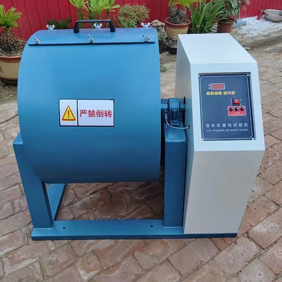 2、將試用的碎石料和鋼球裝入筒內(nèi),密封蓋好擰緊螺釘。開動儀器轉(zhuǎn)動500轉(zhuǎn)后停止,取出試樣。
